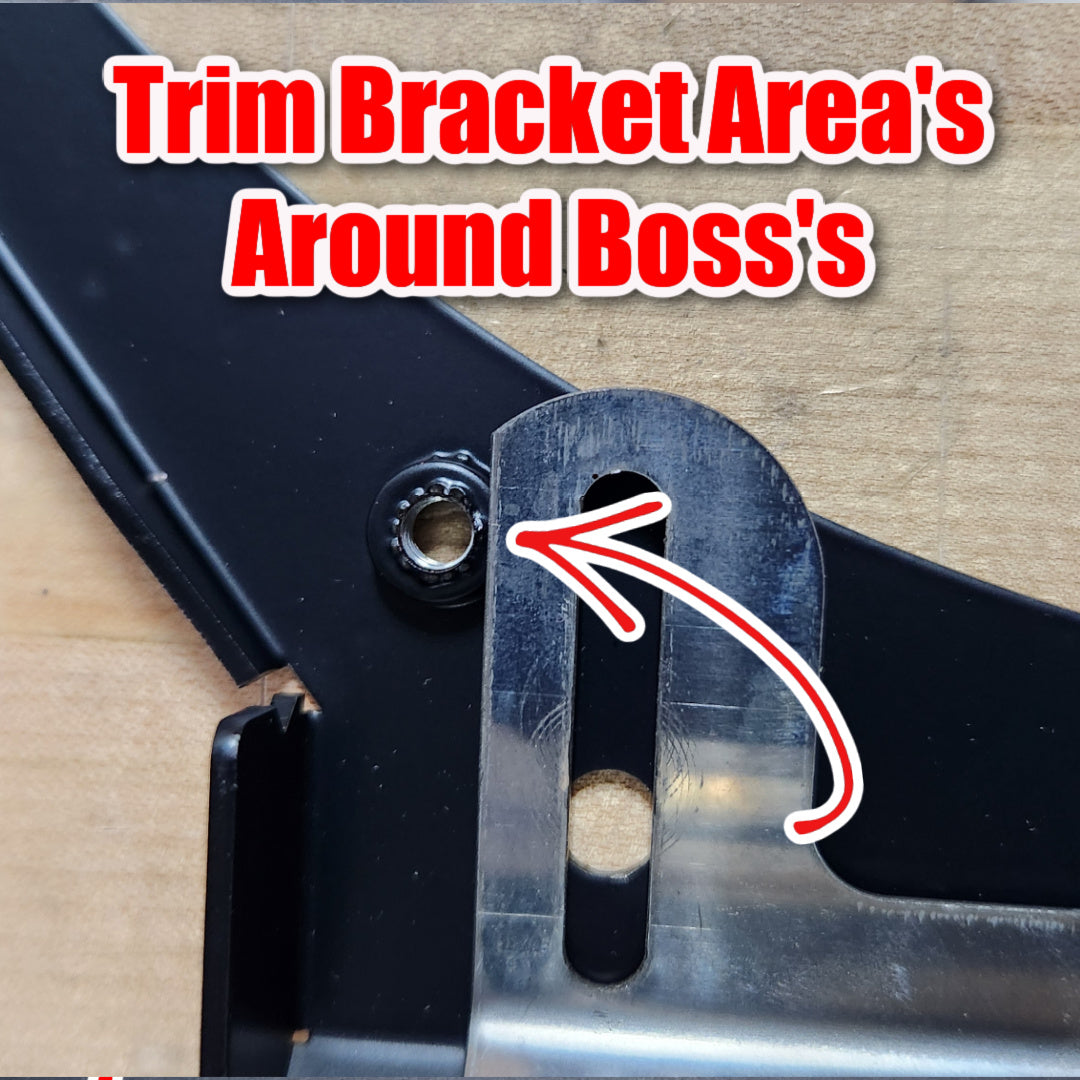 Note: Be Cool upper and lower bracket will require modification where the 6x1 nut interferes on the back of the shroud, and where the Flap Doors are exposed, see pictures. r