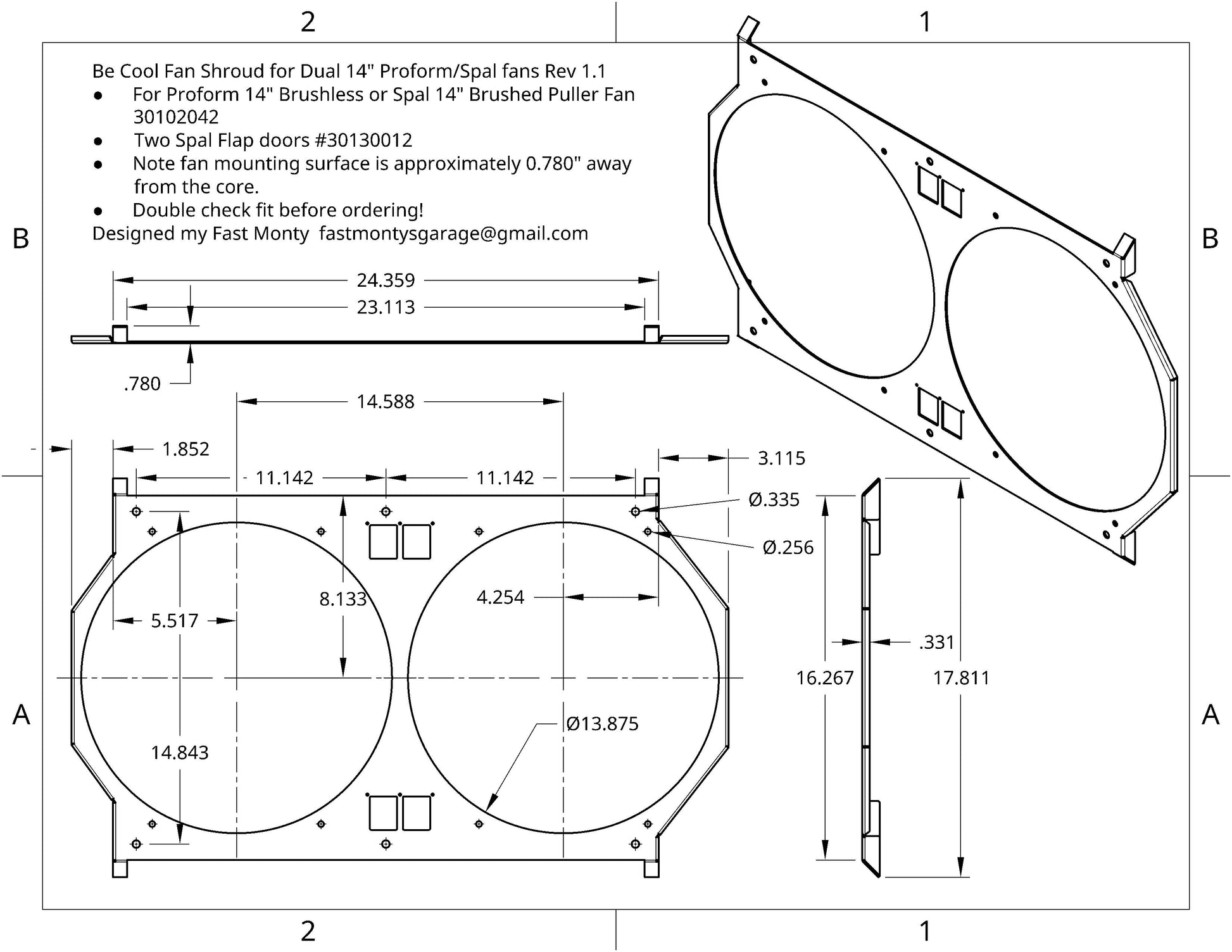 Custom BeCool Fan Shroud Kit WITH Dual 14" Proform Brushless fans replaces fan kit used on 81168