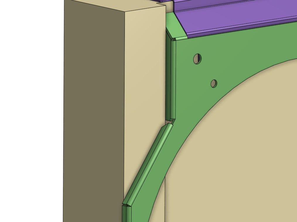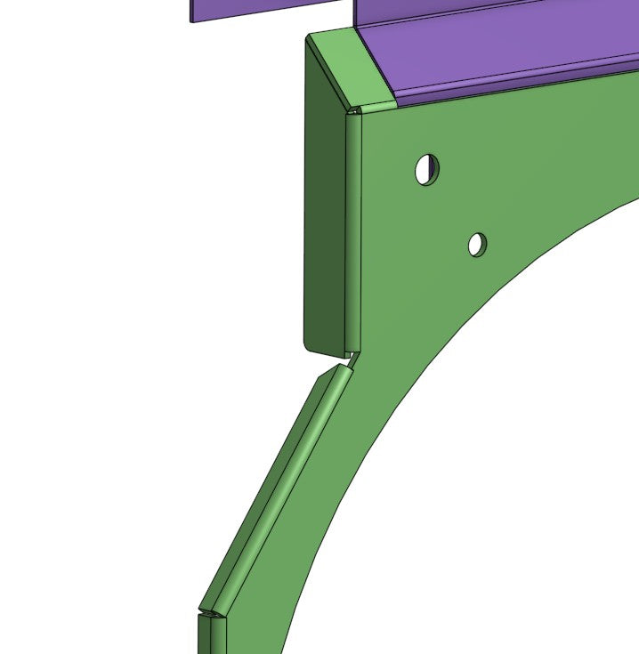 Note: Be Cool upper and lower bracket will require modification where the 6x1 nut interferes on the back of the shroud, and where the Flap Doors are exposed, see rendering.